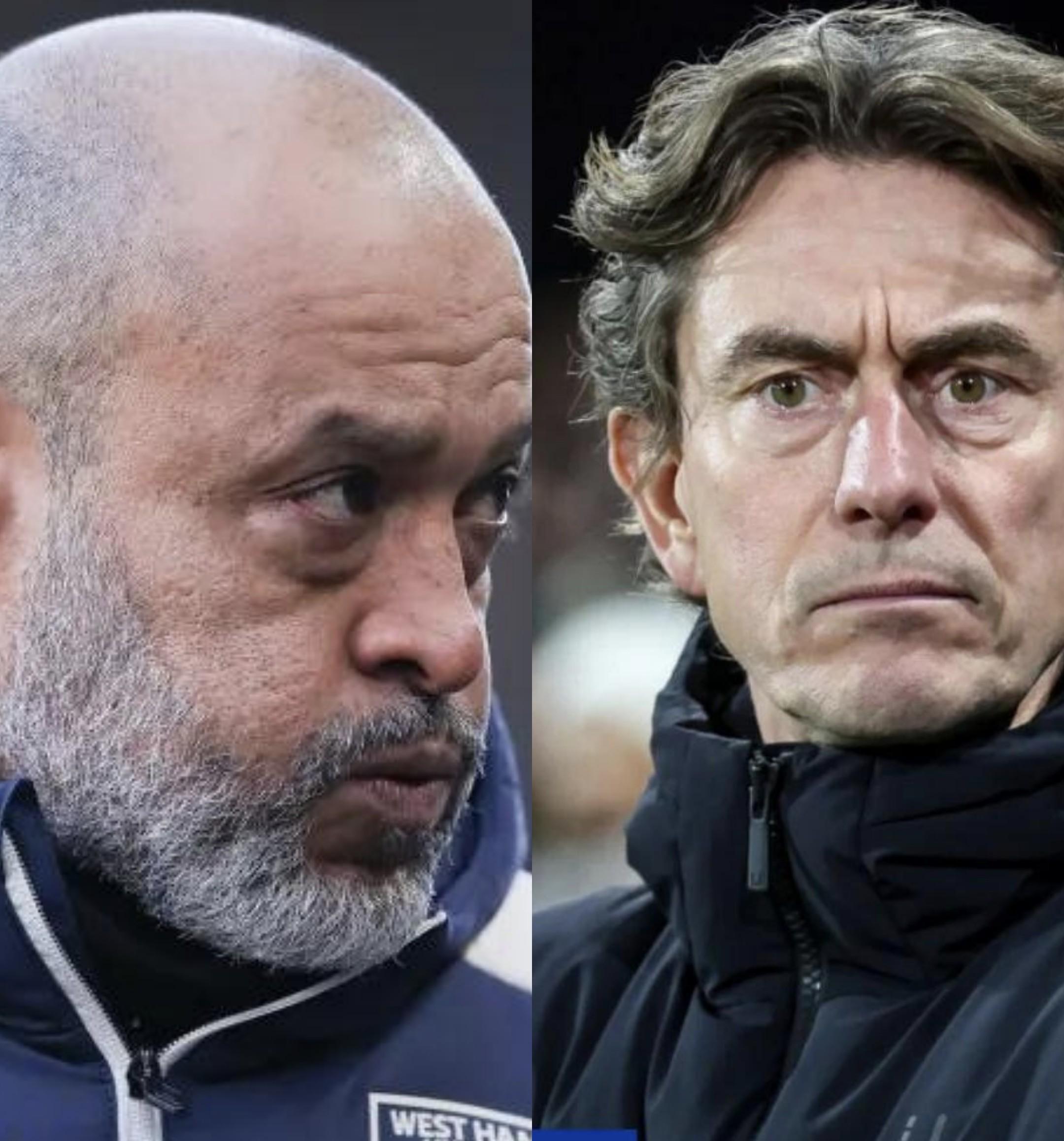 努诺上任后,西汉姆联的战绩并未改善,目前深陷降级区,落后第17名诺丁汉森林7分。而热刺本赛季战绩不佳,目前仅排在英超第14位。周六,努诺和弗兰克两大下课热门教练将直接交锋。